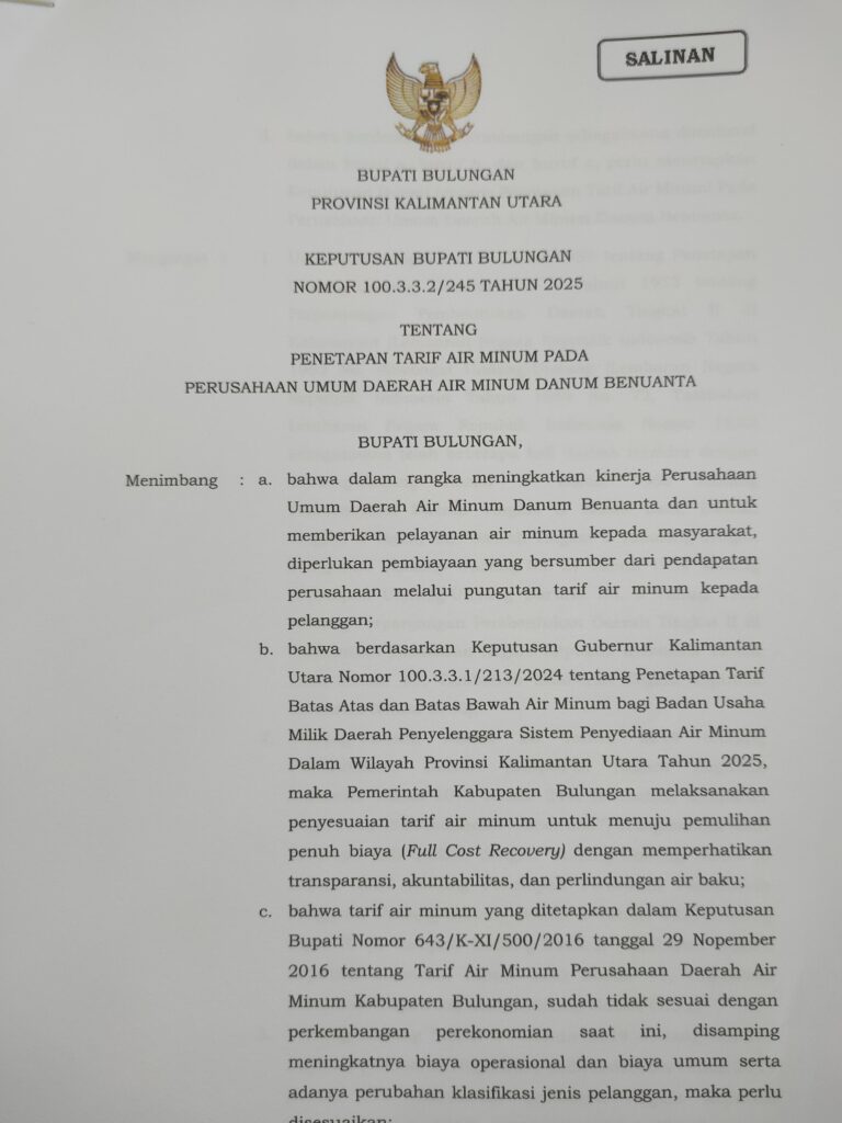 Kaltaraberkisah.com, Bulungan – Direktur Perumda Air Minum Danum Benuanta (PDAM Bulungan), Eldiansyah, SE, memberikan klarifikasi atas keluhan masyarakat terkait meningkatnya tagihan pembayaran air bersih dalam beberapa waktu terakhir.